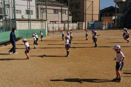 運動場は寒いですが、体を動かすとあたたまりますね。