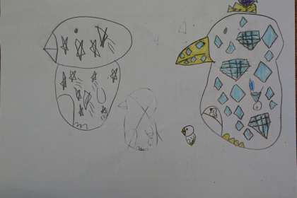 まだ、下書きの途中ですが、子どもたちが考えている「せかいいち きれいな ふしぎな いきもの」を紹介します。