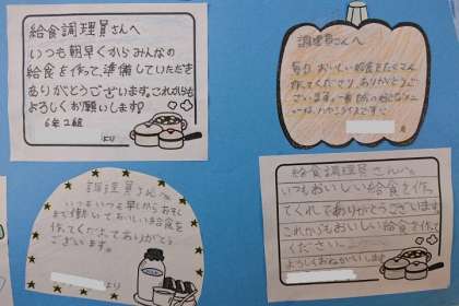 子どもたちから「おいしい給食ありがとう!」のメッセージです。