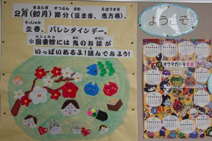 また、2月は節分にちなみ、「おに」にまつわる本を図書室前に並べています。