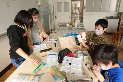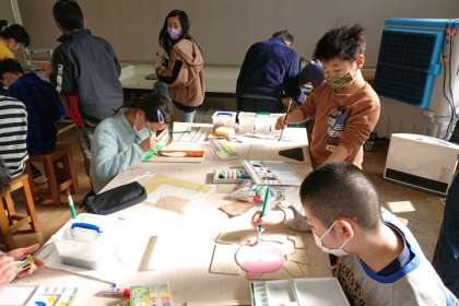 そろそろ完成に近づいている子どもや、時間をかけてていねいに色をぬっている子どももいます。