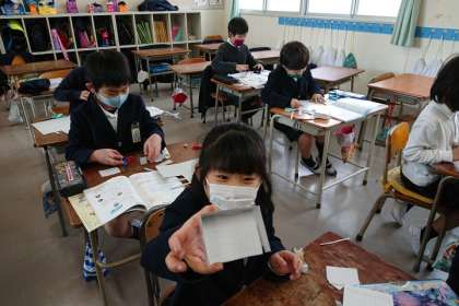 今日のめあては「工作用紙で、はこの形を作ろう」。
