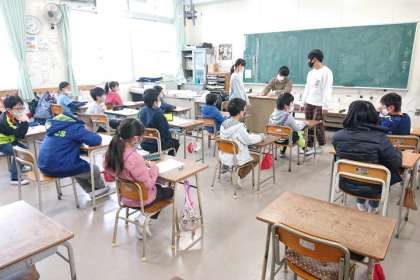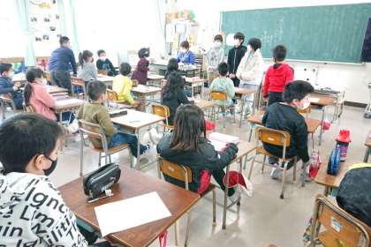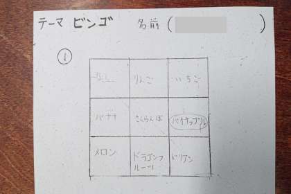 1年生は動物の名前、3年生は果物の名前、5年生は歌島小学校の先生の名前をマスに書きます。