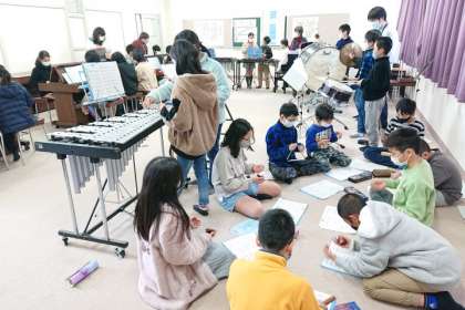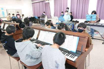 音楽科では、合奏の練習をしています。