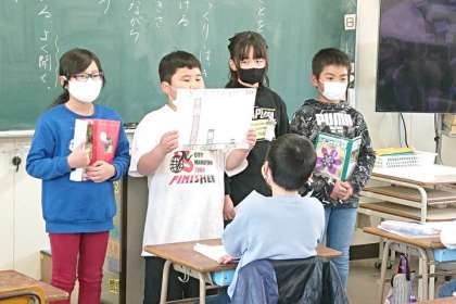 その後、「休日に何をしているのか」「健康に気を付けているのか」「アニメについて」「読書について」のグループからの報告がありました。