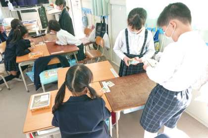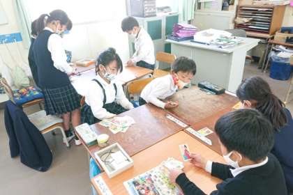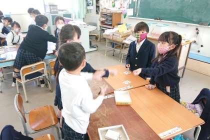 子どもたちは、昔から伝わる遊び「かるた」をグループで楽しんでいます。