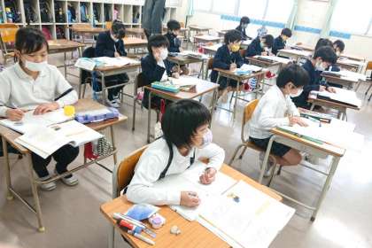 「長さ」「かさ」「時間」の復習問題に取組んでいます。