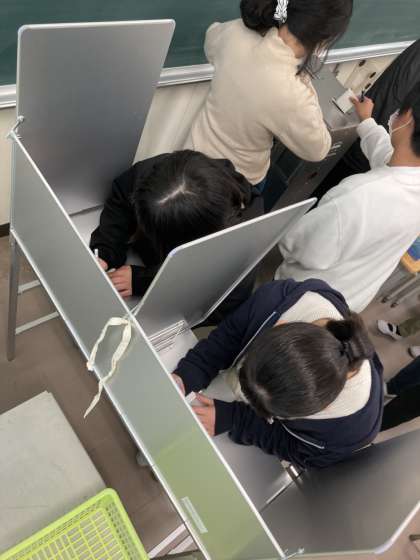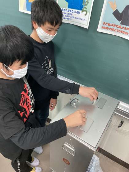 子どもたちは、「誰に投票するか決めるとき、すごく悩んだ。」「実際に投票する時はドキドキした。」などの感想を話していました。