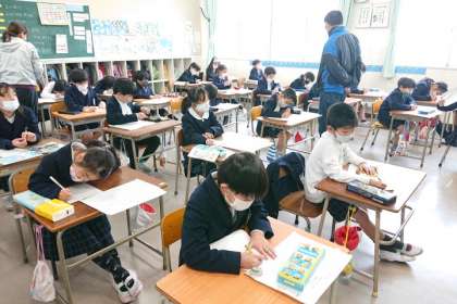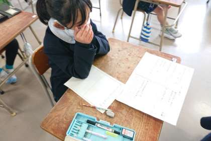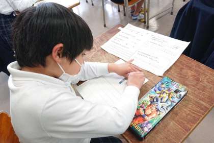 調べたことをもとに、プリントにわかったことや感想をまとめています。