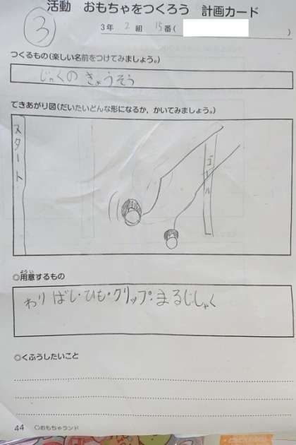 風やゴムの力、電気やじしゃくのはたらき、音の性質などを利用して、どんなおもちゃができるか考えています。