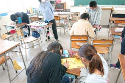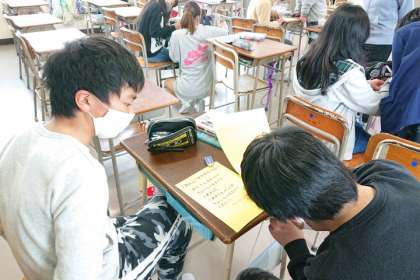 給食委員会は、各教室にメッセージカードを書いています。