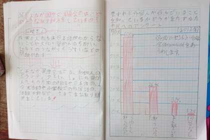 この時間にわかったことや気付いたことなど、自分たちで工夫してノートにまとめています。