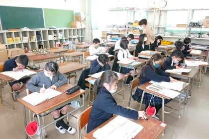 学級2分割で授業を行っています。