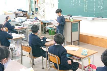 子どもたちが自分の好きな場所を友だちに紹介する学習をしています。