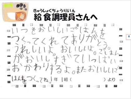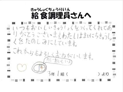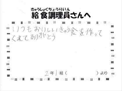 子どもたちから給食室へ 〜3月12日〜