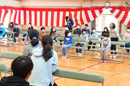 リハーサル後、5年生の感想を聞いています。