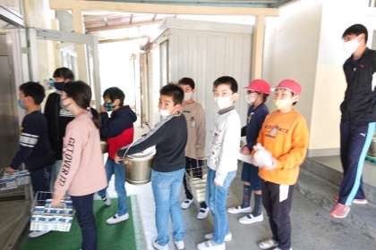 給食当番が、食器や食缶を返しに来ました。