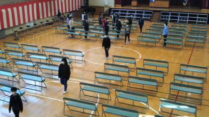 入退場、証書授与、呼びかけ、歌など、最終チェックをしています。