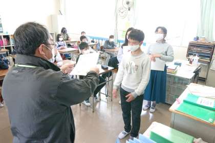 6年生の3人が、漢字検定で優秀な成績を収めたので、西淀川区長より表彰されることになりました。