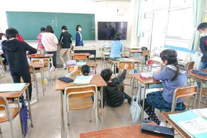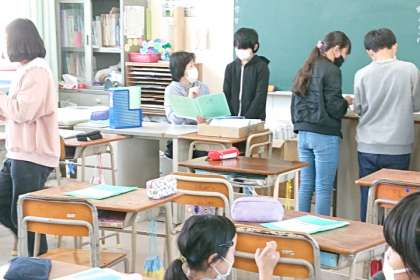 通知票を渡したり、身の回りの掃除や片付けをしたりしています。