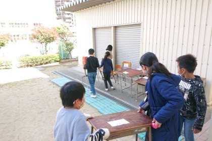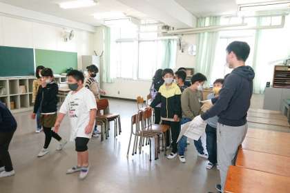 みんなで協力しながら、新年度に向けて、学習室にある机・いすを倉庫に移動しています。