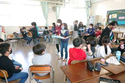 3年生の教室では、班ごとのクイズやなぞなぞで盛り上がっていました。