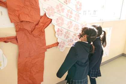 3学期の児童会活動として、代表委員会の子どもたちが、全校で「ありがとうの木」を作ろうと考えました。