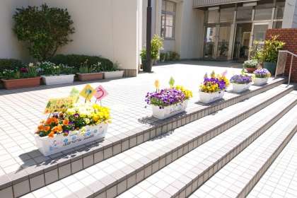 入学のお祝いに、昨年度の飼育栽培委員会の子どもたちが育てたお花です。