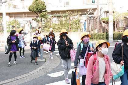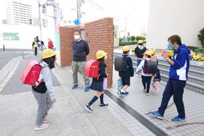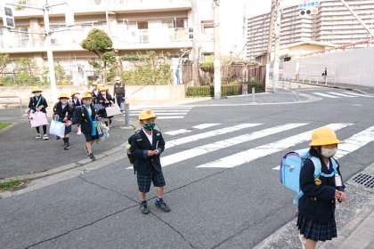 登下校中は、地域の見守り隊のみなさんが毎日子どもたちのようすを見ていただいています。