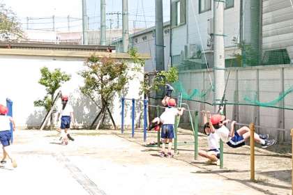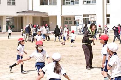 歌島小学校では、広い運動場でのびのび遊ぶことができます。