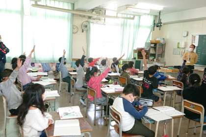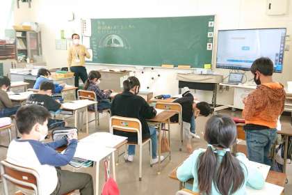 分度器を使って、角の大きさを正しく測る方法を学習しています。