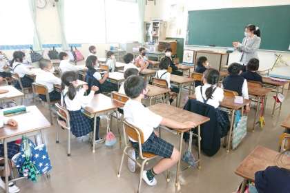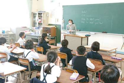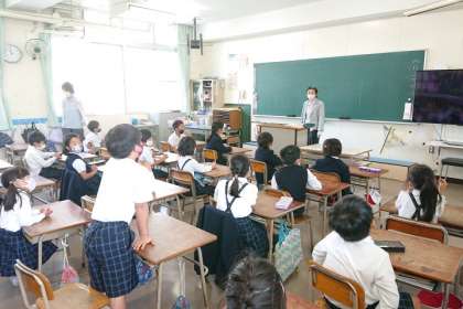 「どんな花が好きですか。」「何色の服が好きですか。」など、子どもたちがC−NETの先生に質問します。