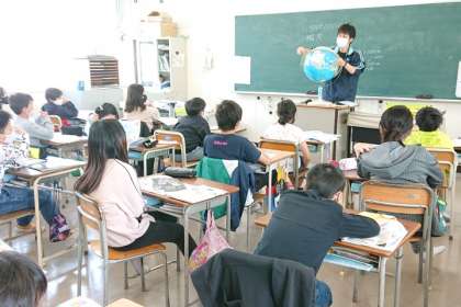 5年生では、世界の中の日本の位置など、地図や地球儀で調べます。