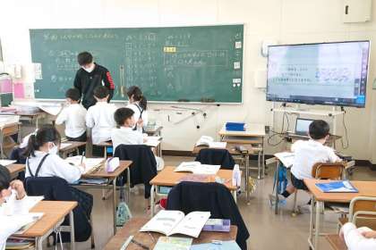子どもたちは、3の段のかけ算を使って、□×3=24の□に何が入るかを考えるとよいことがわかりました。