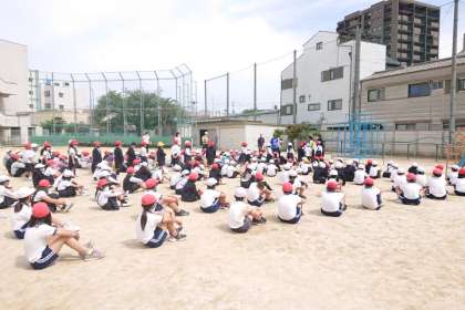 今日は3分以内に全員運動場に集合することができました。