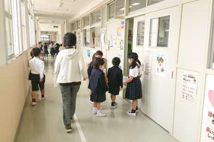 2年生の付き添って、1年生が学校たんけんに出発します!