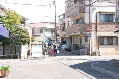 学校正門から野里幼稚園の横を通って、阪神高速高架下の信号を渡った付近です。