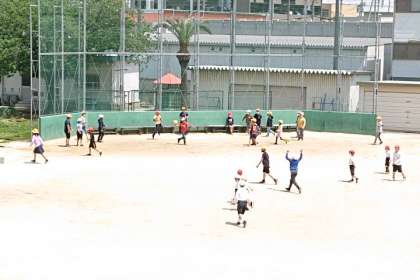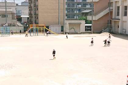 たくさんの子どもたちが元気いっぱい外遊びをしています。