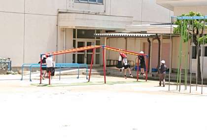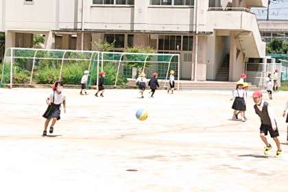 子どもたちが元気に外遊びしています。