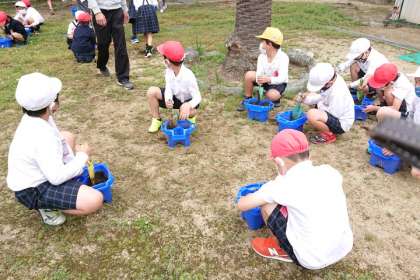 ミニトマト、おくら、えだまめ、ナスなどの野菜を植える準備をしています。