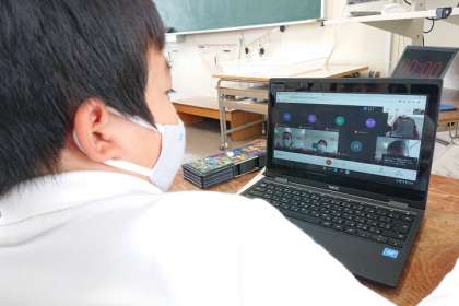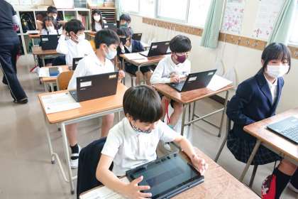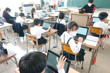 1人1台端末を操作する練習をしています。