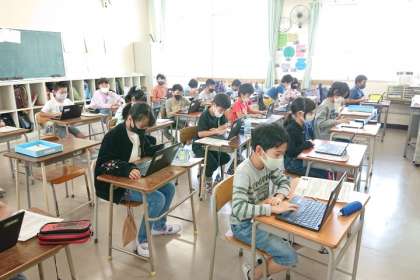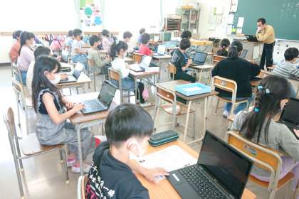 1人1台端末の操作を練習しています。