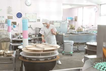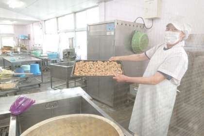 短縮登校中も給食調理員が子どもたちのために心をこめて調理しています。