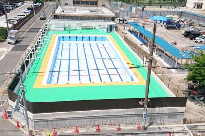 おとなりの歌島中学校では、プールの新築工事を行っています。