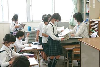 ドリルを使ってていねいに練習した後、先生にチェックしてもらいます。
