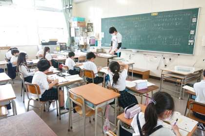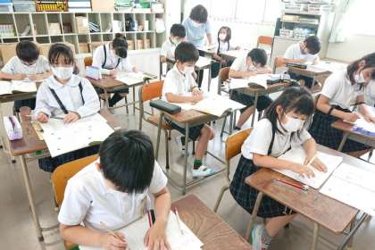 学級2分割で学習しています。