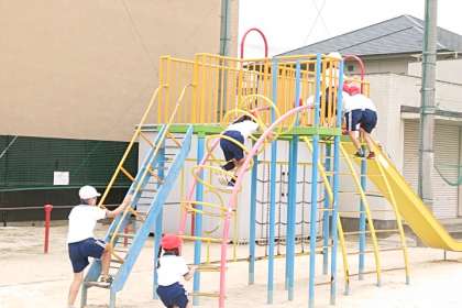 子どもたちがいろいろな遊具を使って体を動かしています。