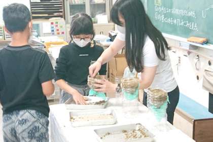 土のつぶの大きさと水のしみこみ方の関係(4年生) 〜5月27日〜