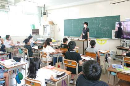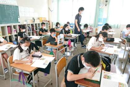 5年生の子どもたちは、教材を読んで「あいさつ」の大切さについて考えています。