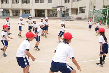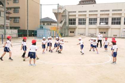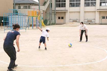 次に、ころがしドッジの説明を聞いて、みんなで実際にしてみました。